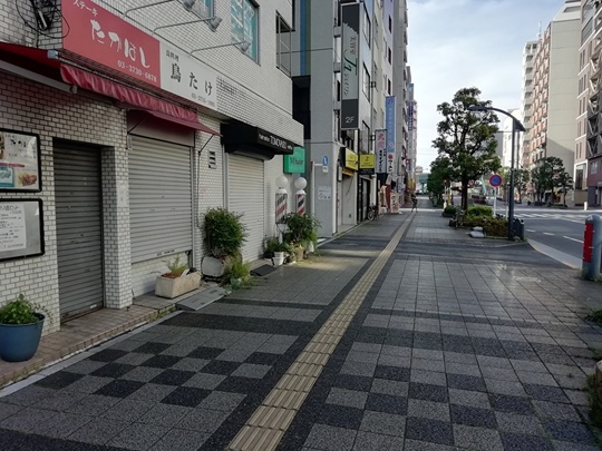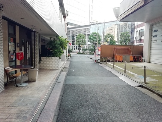 左側は手前から順に、焼き鳥屋さん、居酒屋さん、マンションの入口と並んでいます。