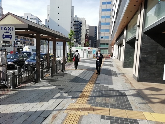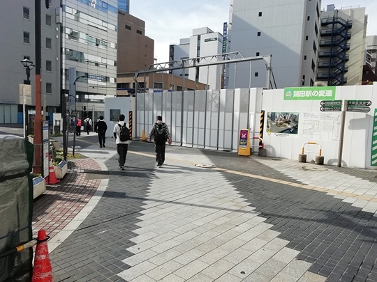 (東口ロータリー工事中のため、通路の変更が度々あります。現在は左に曲がらず、まっすぐ進んでフェンスを通り過ぎたら左に曲がってください。5.の写真のところに来ます。)