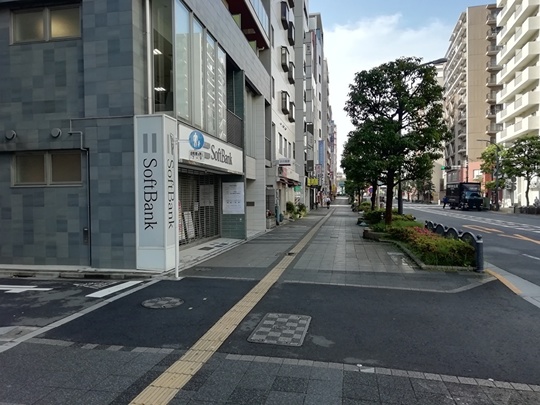 8.そのまま前へ進んできました。写真のソフトバンクのビルは7.で書いている空きテナントのビルになっています。