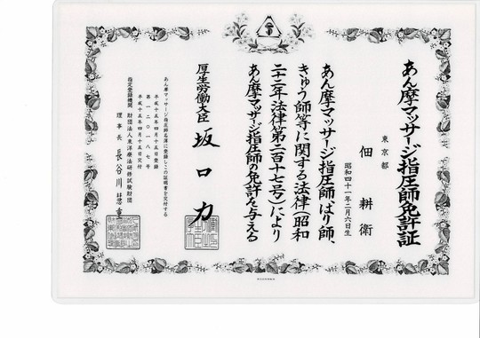あん摩マッサージ指圧師免許証