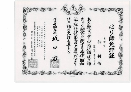 はり師免許証
